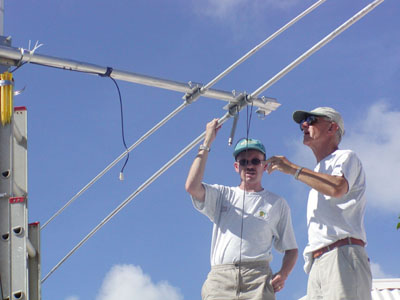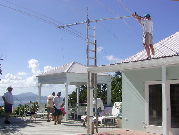 Above - Ted W4ZE assembles the FORCE 12 beam while Paul NP2JF prepares the ladder.