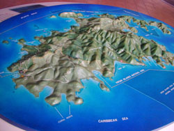 St. John is the smallest of the 3 American Virgin Islands, located 50 miles east of Puerto Rico. It is 2 miles wide by 9 long, and 800' high. It is an island known for its beaches, which are among the most beautiful in the world. The residents call it "The American Paradise"