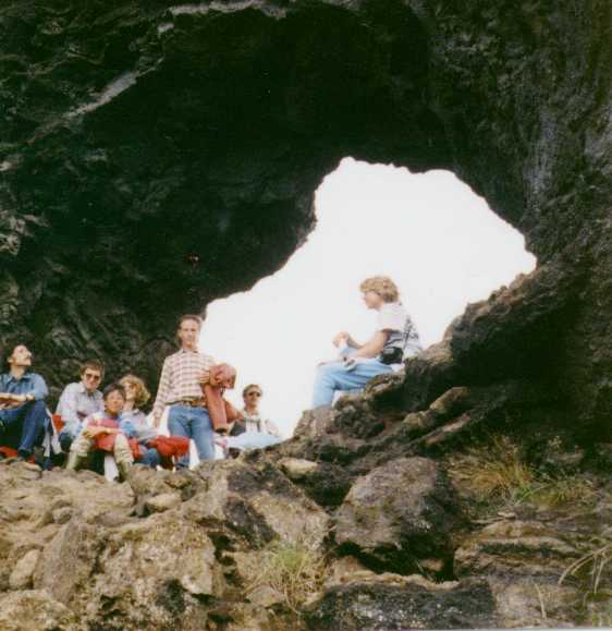 On Easter Sunday, Eyvindur asked to attend the Church service, and was allowed to go. He sat by the door, and no one watched him, they all looked at the pastor. While the pastor was reading the gospel, Eyvindur slipped out and at the end of the service the people noticed he was gone. A search party was gathered, but a mist lay so heavy it was impossible to travel. To this day, such a mist is called Eyvindur's mist. The search contined for a long time, but no one found Evyndur. Later, Eyvindur said that he had hidden in a ridge of lava near the church. No one thought to look so near the church. Men had search far and wide for that which was close at hand.