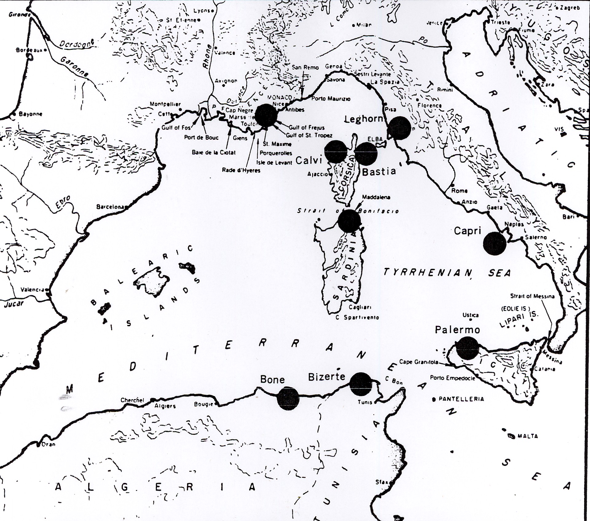 PT operating bases in Mediterranean