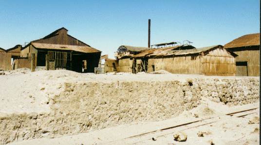 The mines closed, the towns were deserted. Given the preserving atmosphere of the desert, these towns stand today just as they were when their residents left. We were there on "The Day of the Dead" and many families had returned to the town of Humberstone to celebrate the holiday. Our guides decided that we'd get as good a taste of the deserted town by touring the industrial section, where the nitrate was brought to the surface and processed.